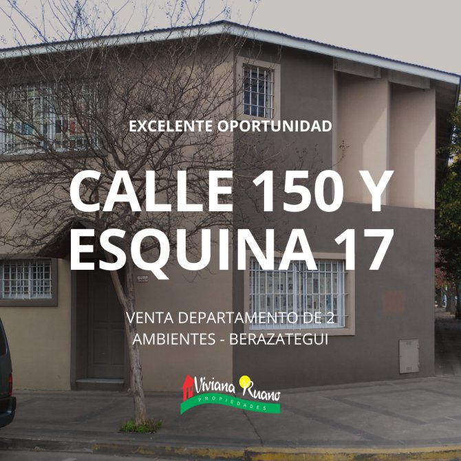 Departamento en venta de 2 ambientes excelentemente ubicado en calle 150 esquina 17, Berazategui.